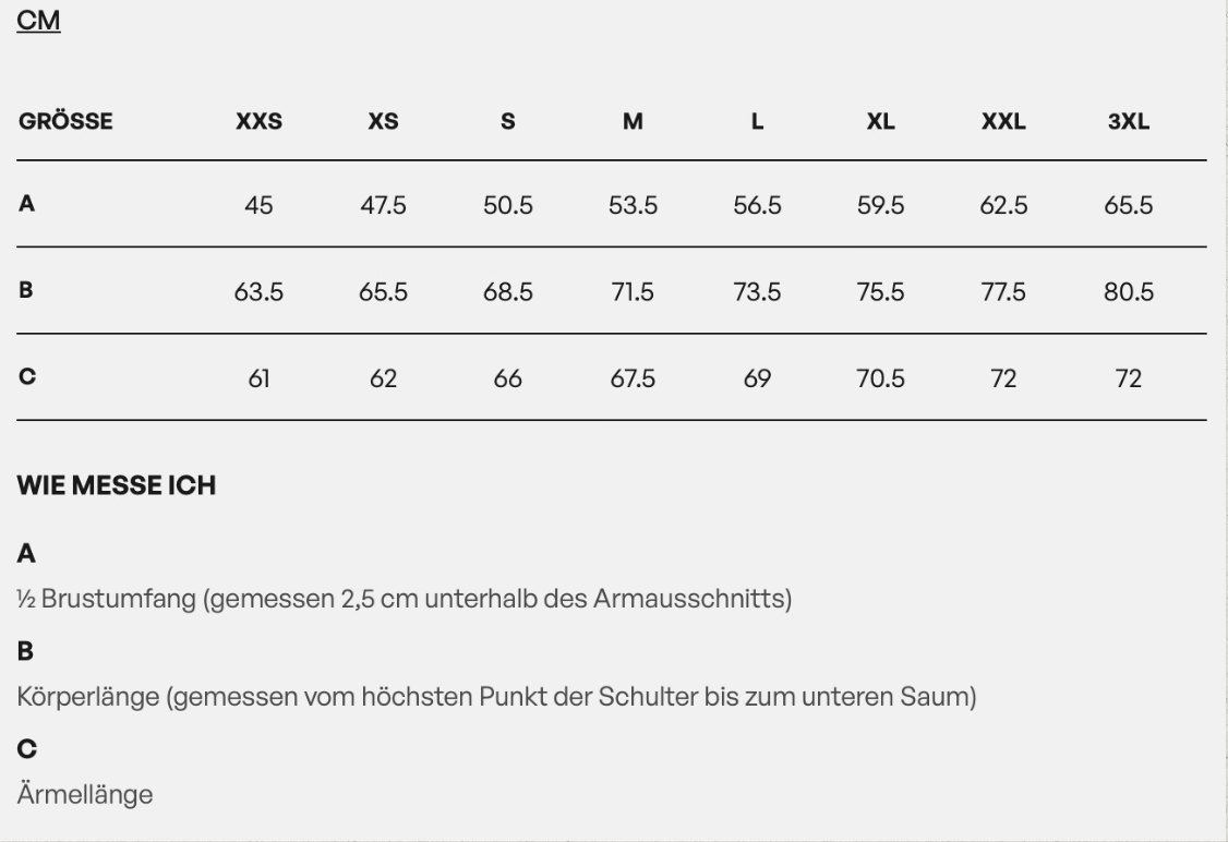 Grössen an Lager